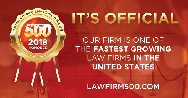 Law Firm 500 2016, 2018 Honoree- One of the Fastest Growing Law Firms in the Country
